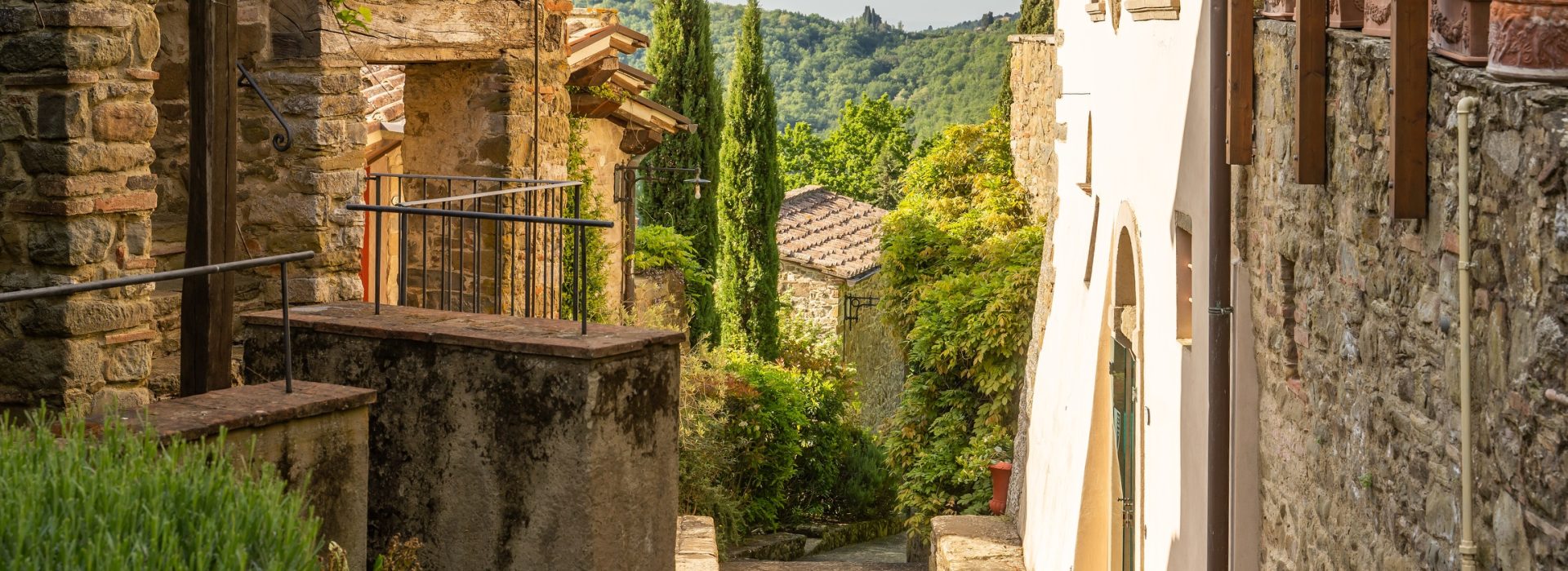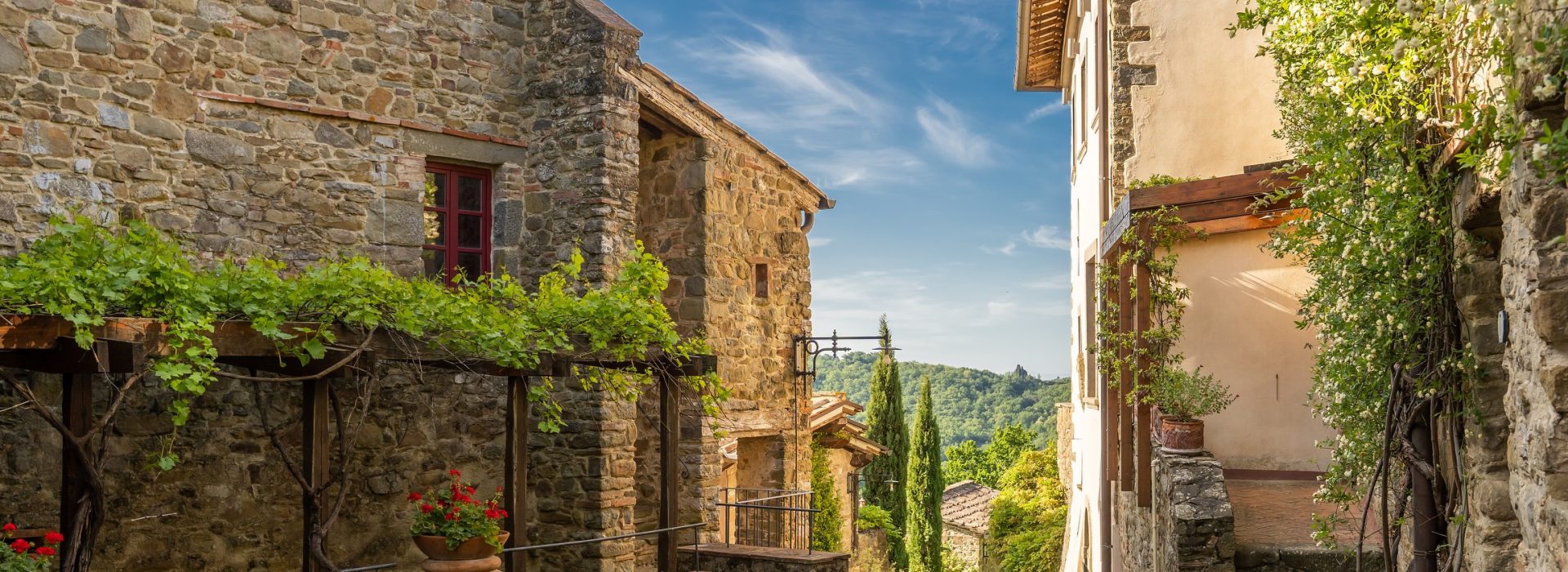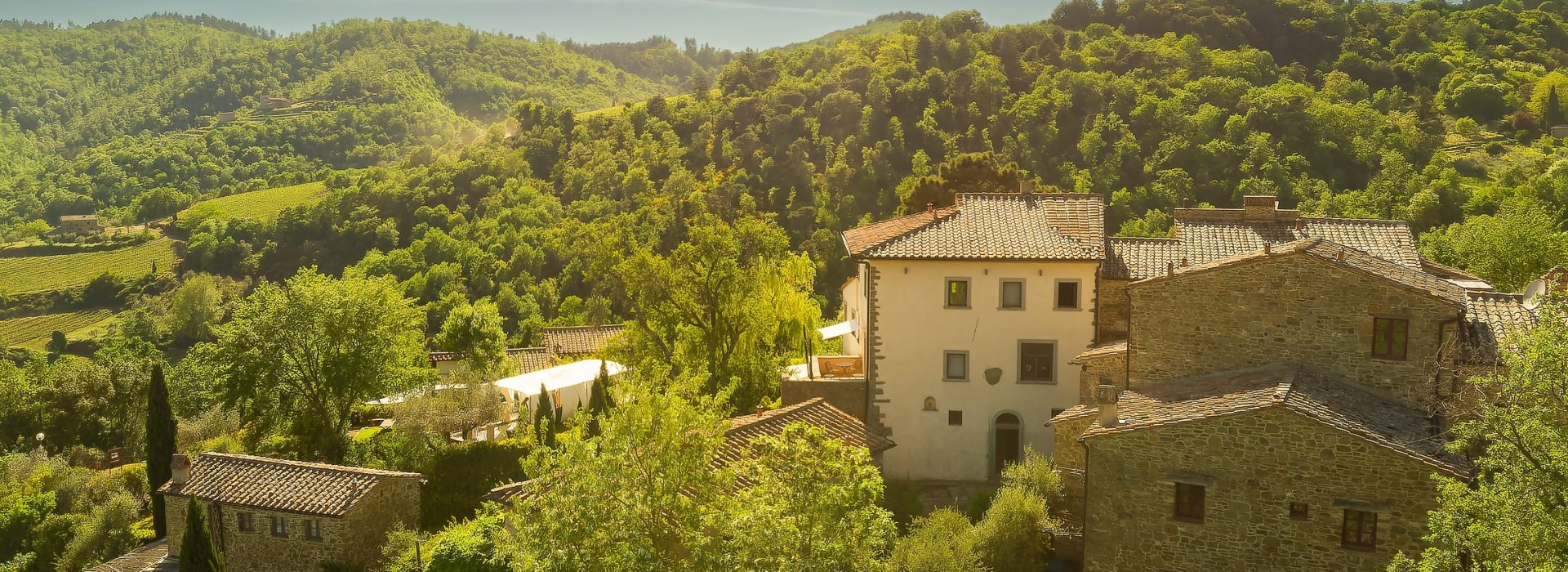 HISTORIC TUSCAN PALACE OF THE ANCIENT ALBIZI FLORENTINE FAMILY IN THE TWELFTH-CENTURY, VILLAGE OF MONTEFIENALI IN SIENESE CHIANTI