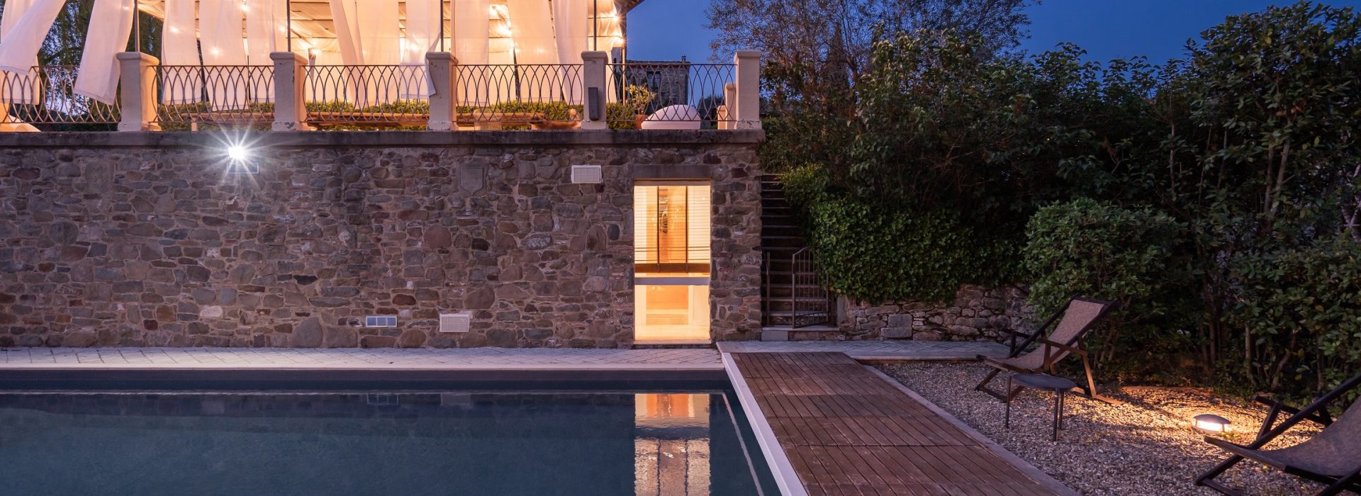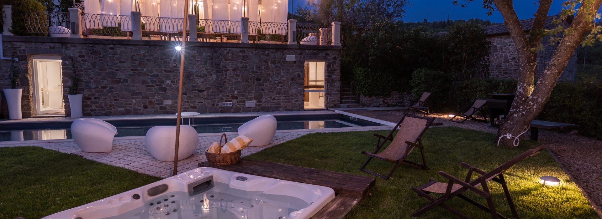 Villa Albizi rises as a glittering fulfillment of the two Architects Owners fantasy, at once uncomplicated and indulgent, discreet and decadent. An ancient Florentine villa, formed by a main building on a roof garden, the interiors with a modern design in the medieval village that hosts it, dating back to the 12th century.